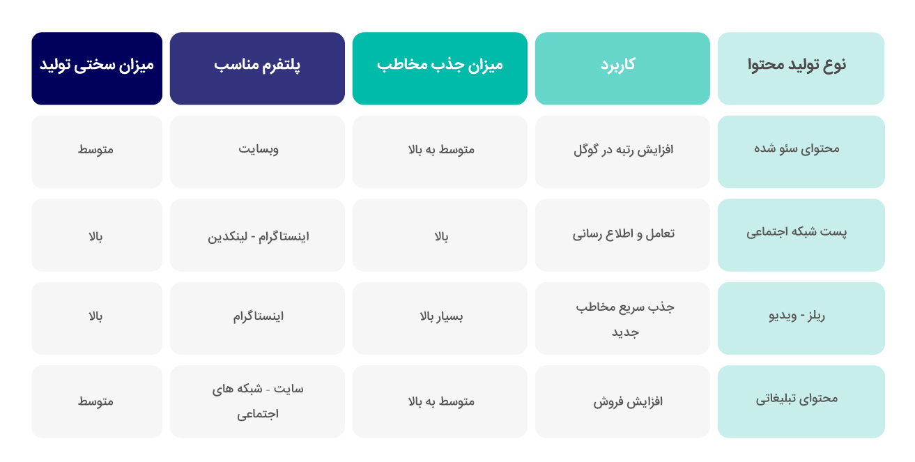 انواع تولید محتوا از نظر تاثیر و کاربرد
